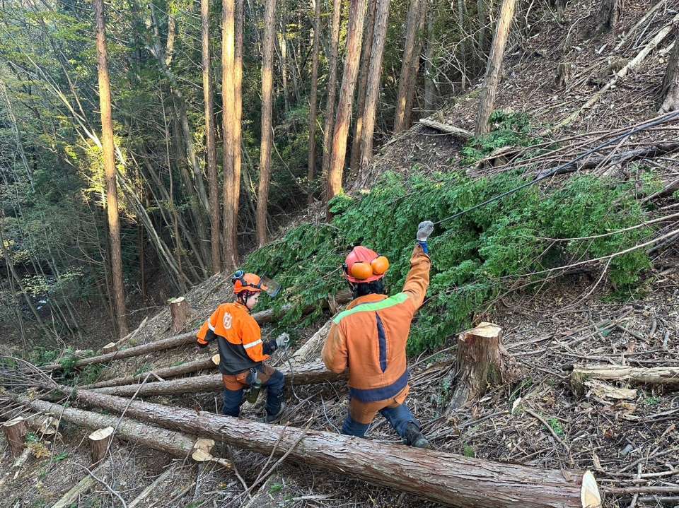 長年この業界に携わってきた林業経験者が多数在籍しており、効率化と安全のバランスを測りながら、これまで作業にあたってまいりました。少数精鋭の会社としてそれぞれが自分の役割を十分に把握し、的確に作業を進めていけるよう、どんな仕事にも真摯に向き合いながら責任を持って仕事を行っています。